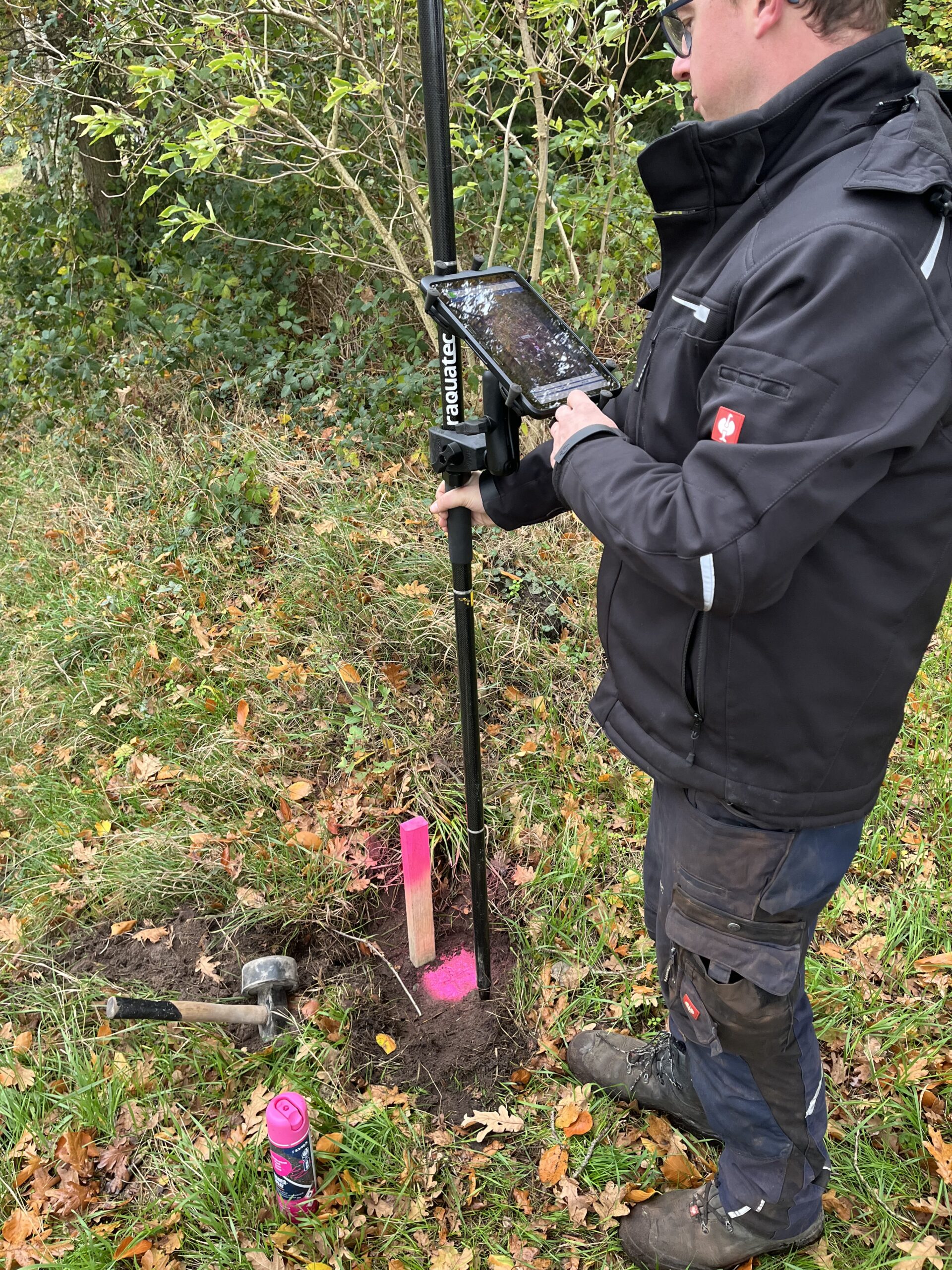 Wir arbeiten mit Stonex GNSS Roverstäben der neuesten Generation. Diese übertragen digitale Pläne im .dxf oder .dwg Format Zentimeter genau in die Örtlichkeit. Modernste AR Technologie visualisiert dabei die Absteckpunkte und erleichtert die Arbeit somit erheblich.