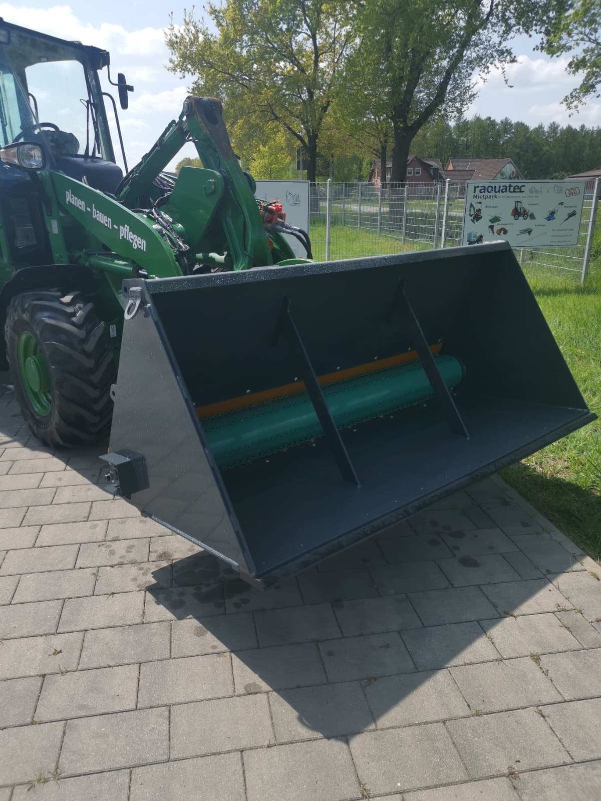 Mit einer Arbeitsbreite von 2,2 m und 1100l Schaufelinhalt ist der Absander ABS02 das ideale Gerät für Radlader von 5 bis 7 t.